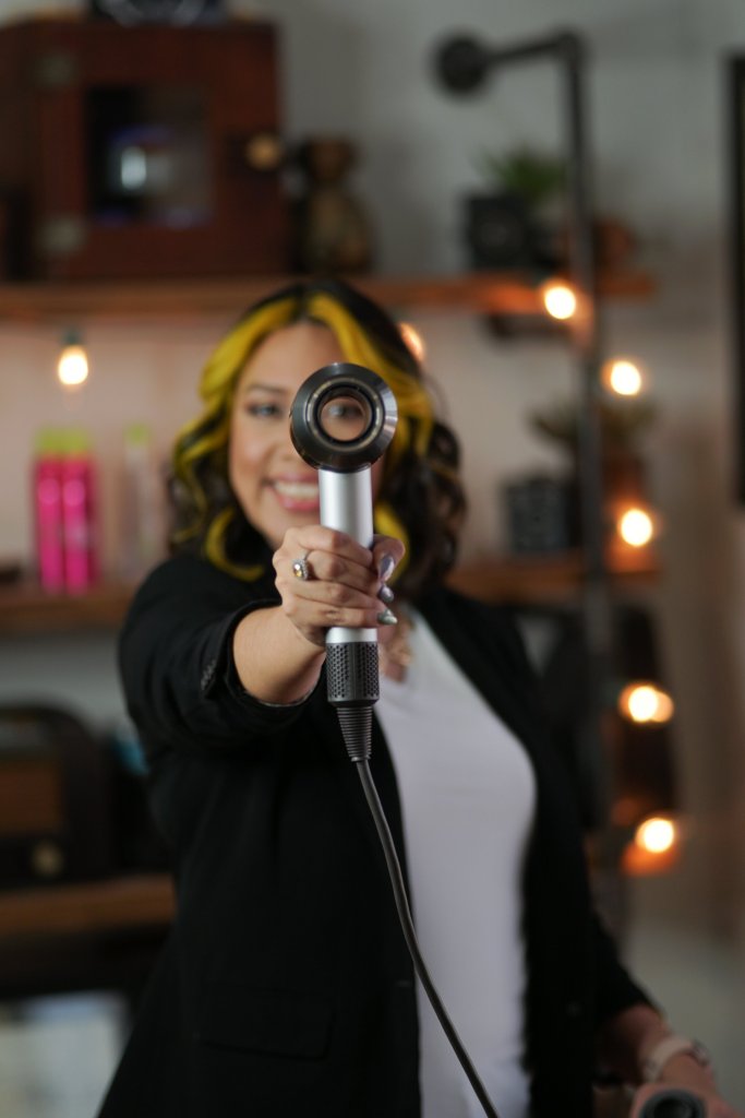 Haircut, wash and round brush blow-dry. Alternatively, Natural curls may be styled with diffuser.
